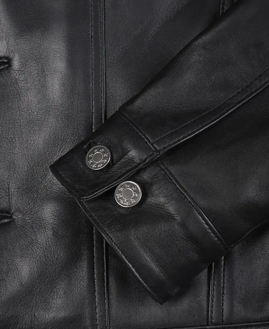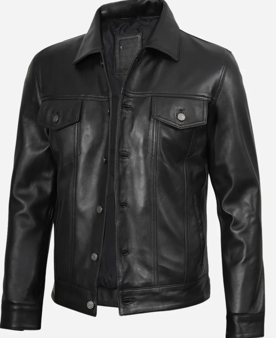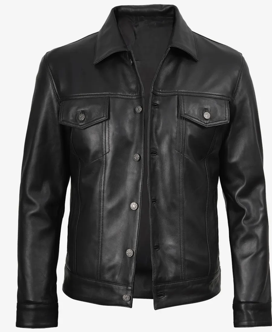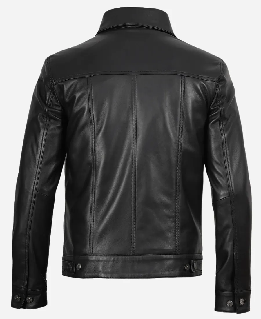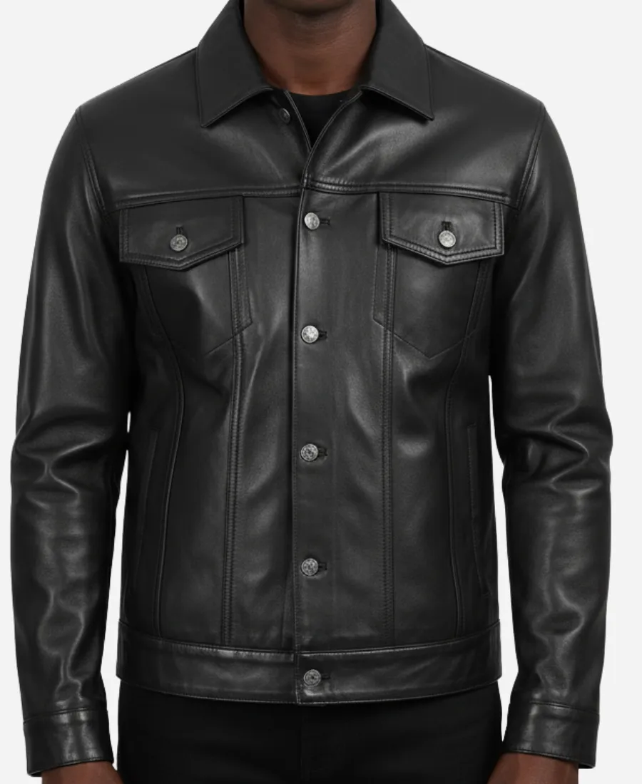 Classic Black Leather Trucker Jacket