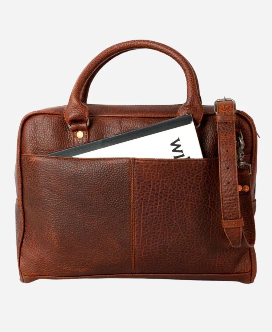 Luxury Reserve Bison Brown Leather Laptop Briefcase
